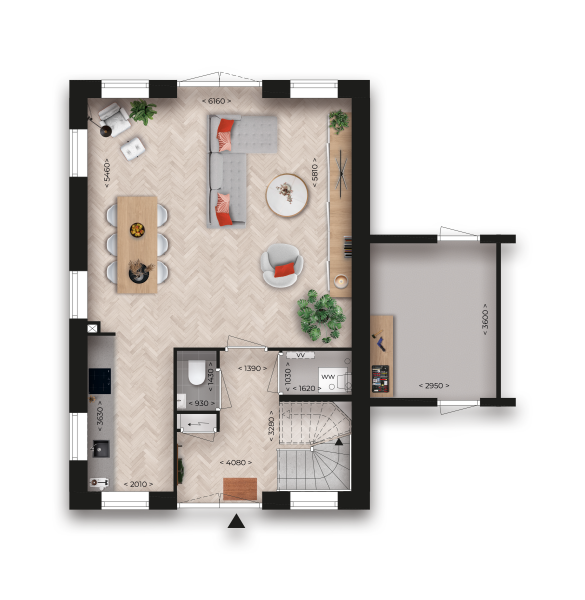 • Genoeg ruimte voor een riante eettafel