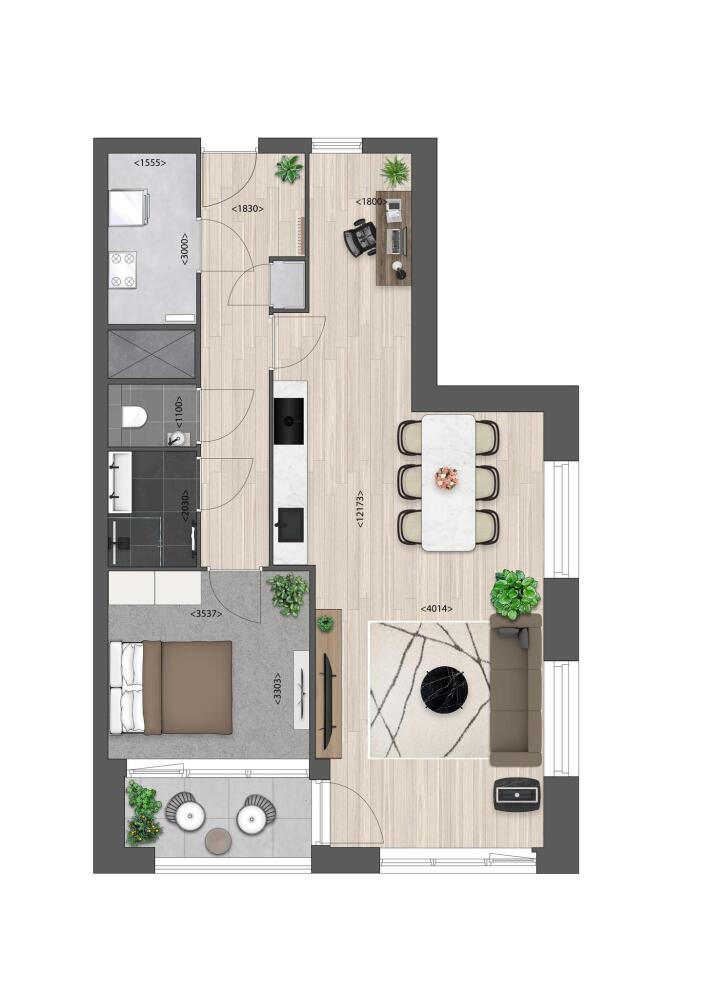 Op alle woonlagen van zowel het carré als de torens vindt je 2-kamerappartementen in diverse varianten. Types A02 en types T01 t/m T07 bieden je daarbij respectievelijk een half open keuken of een half open werkkamer voor alle privacy, dat geeft mogelijkheden tot heerlijk thuis werken!