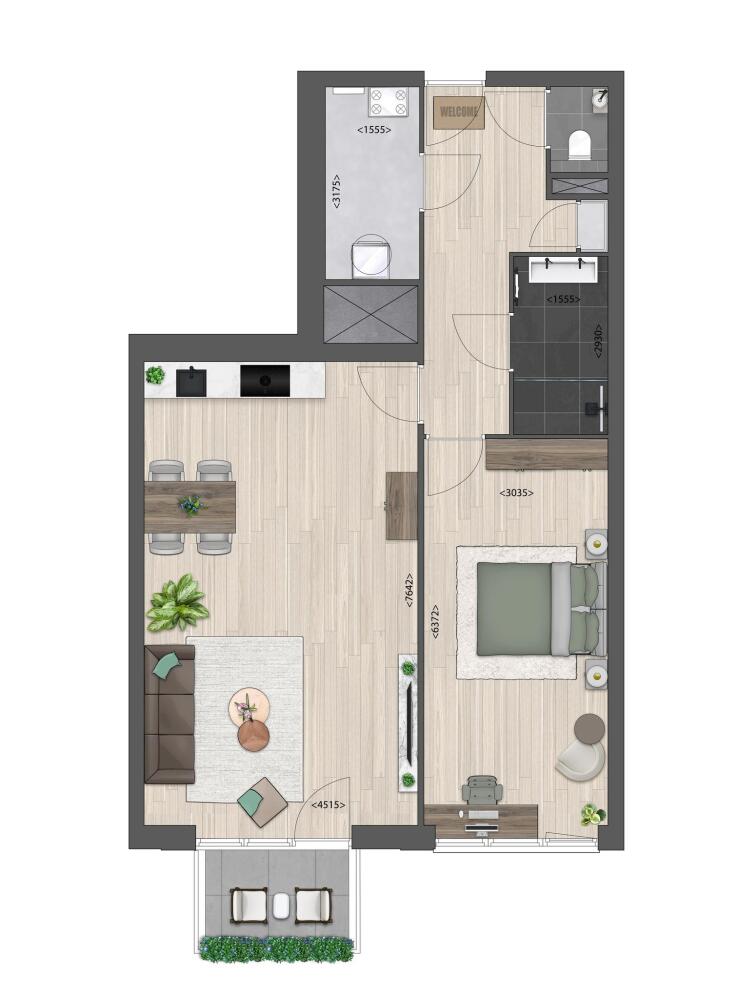 Op alle woonlagen van zowel het carré als de torens vindt je 2-kamerappartementen in diverse varianten. Types A02 en types T01 t/m T07 bieden je daarbij respectievelijk een half open keuken of een half open werkkamer voor alle privacy, dat geeft mogelijkheden tot heerlijk thuis werken!