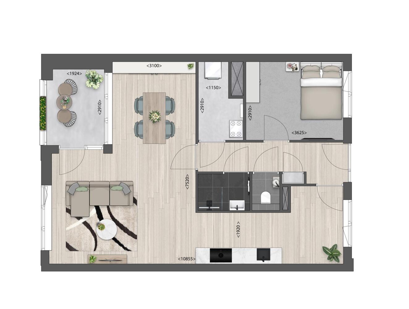 2-kamer appartement (A02/A05/C6, T01 t/m T07)