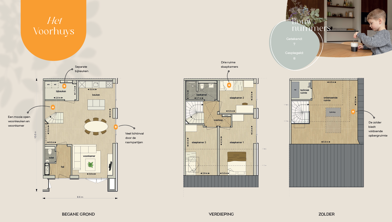 • Het Achterhuys: Twee levensloopgeschikte woningen met een woonoppervlakte van 113 m², perfect voor wie graag een slaapkamer en badkamer op de begane grond wil.