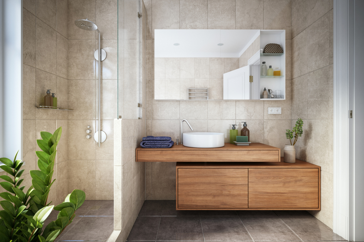 - Denk aan verlichting: de kleur en structuur van tegels ogen anders in daglicht dan in kunstlicht.
