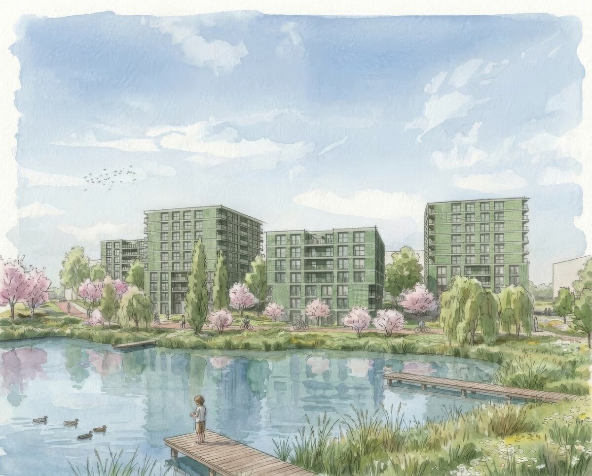Het wordt echt heel fraai! Rondom de gebouwen wordt er een groene buitenruimte aangelegd die deels openbaar toegankelijk is voor de hele buurt. Denk aan sfeervolle wandelroutes en fijne plekken om even te zitten, bijvoorbeeld aan de waterkant. Zie jij jezelf hier al zitten op een zonnige lentedag?